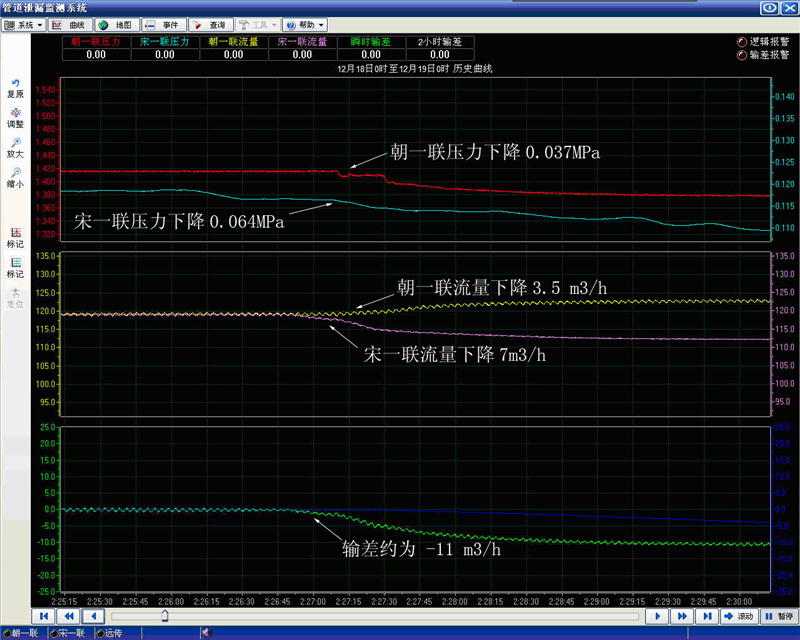 2009年12月18日朝一联-宋一联管线泄漏系统报警曲线