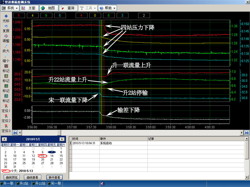 升一联-升2站-升22站-宋一联管线10年5月7日泄漏的报警曲线图
