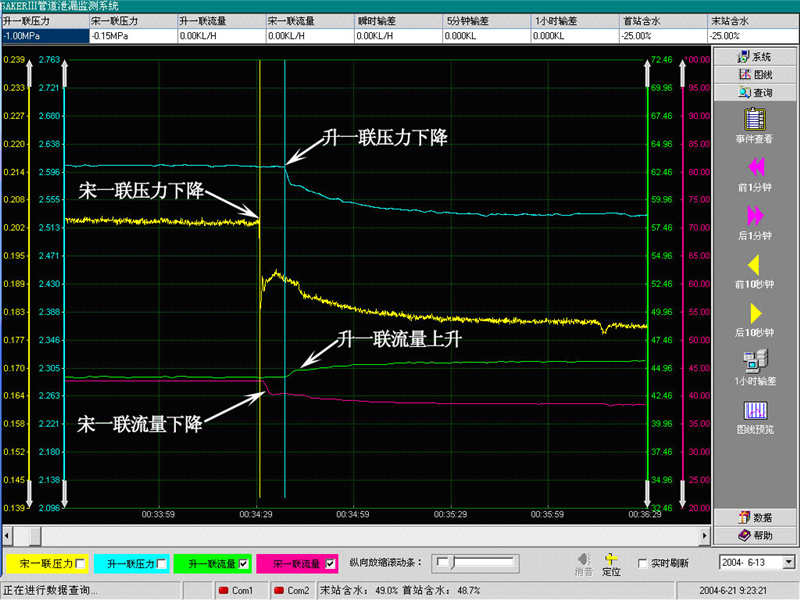 升宋线04年6月13日泄漏报警曲线
